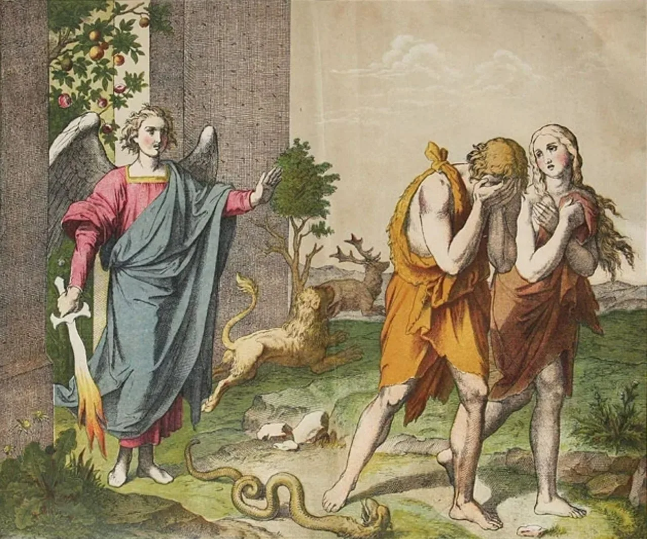 «И выслал его Господь Бог из сада Едемского, чтобы возделывать землю, из которой он взят. И изгнал Адама, и поставил на востоке у сада Едемского Херувима и пламенный меч обращающийся, чтобы охранять путь к дереву жизни» (Книга Бытия, глава 3, стихи 23-24).