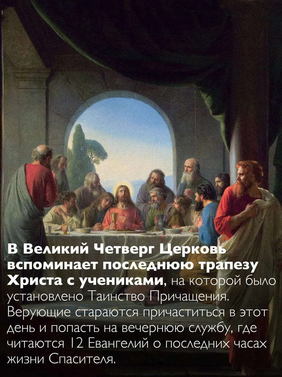 Завтра день Тайной вечери. И мы все готовимся в завтрашний день стать участниками сей Божественной Трапезы. Трапеза уже готова, горница алтаря устлана, престол белоснежный готов принять эту Божественную Трапезу, были бы души наши готовы! Осознаем свое недостоинство, осознаем свои пороки и грехи – но идем к Тебе, Господи! Мы Твои, Господи, дети, не отвергни нас от лица Твоего, но всех нас помилуй по великой Своей милости! Черствость душ наших умягчи, растопи холод сердец наших и дай, Господи, всем завтра согретым, добрым, радостным сердцем приступить ко Святой Чаше и быть причастниками Тела и Крови Христовой.