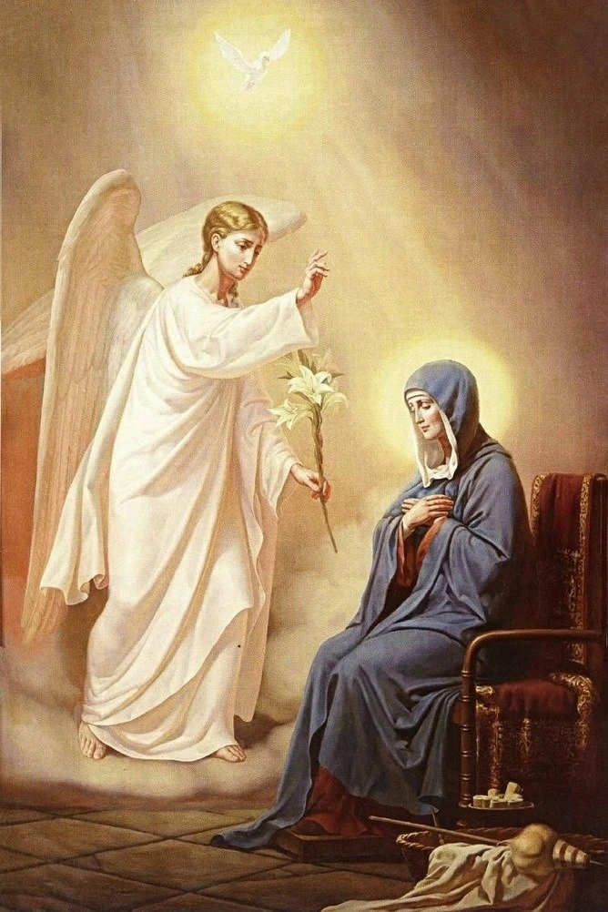 Слово «Благовещение» означает «добрая» весть. В этот день Деве Марии явился архангел Гавриил и возвестил Ей о грядущем рождении Иисуса Христа — Сына Божьего и Спасителя мира: