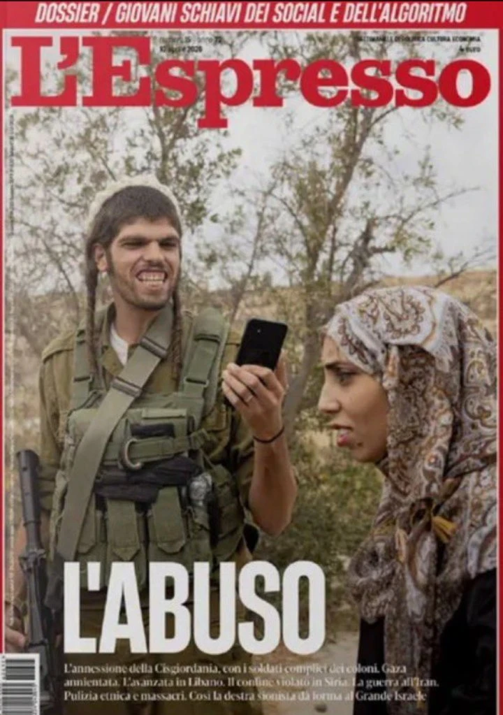 Последний номер итальянского журнала L’Espresso вышел с заголовком ИСТЯЗАНИЕ. Изображение израильского солдата на обложке вызвало недовольство правительства Израиля.