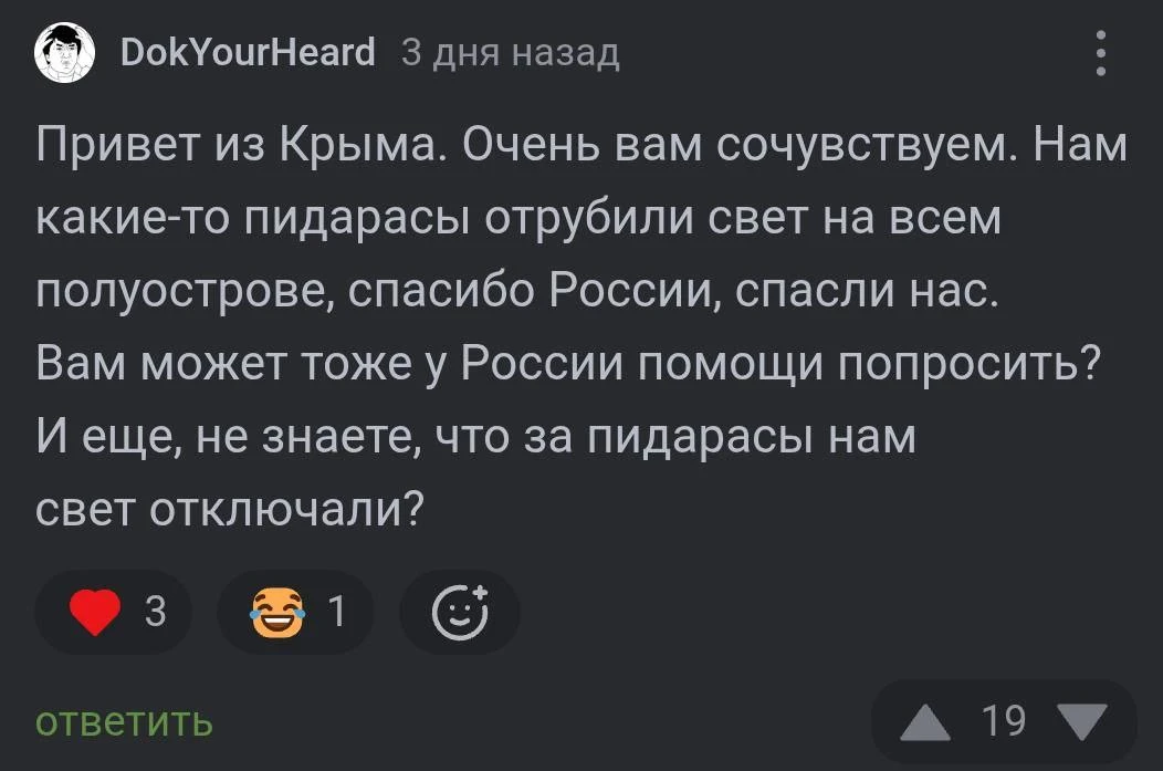И объяснил хохлам, что отсутствие света и тепла это Форс-мажор!