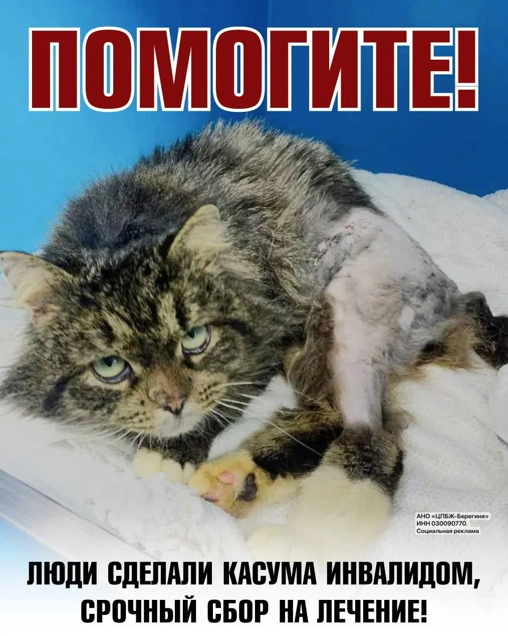 🙏 Помогите котику снова ходить. Люди его искалечили!