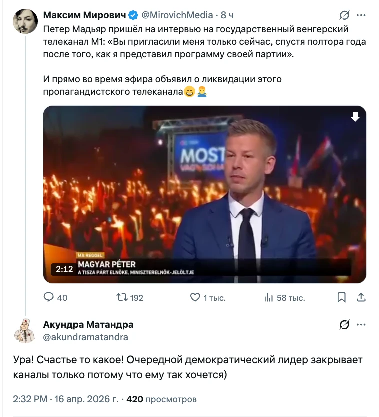 Венгрия показывает, что демократия, это когда президент банит телеканалы которые ему не нравятся. Ок.