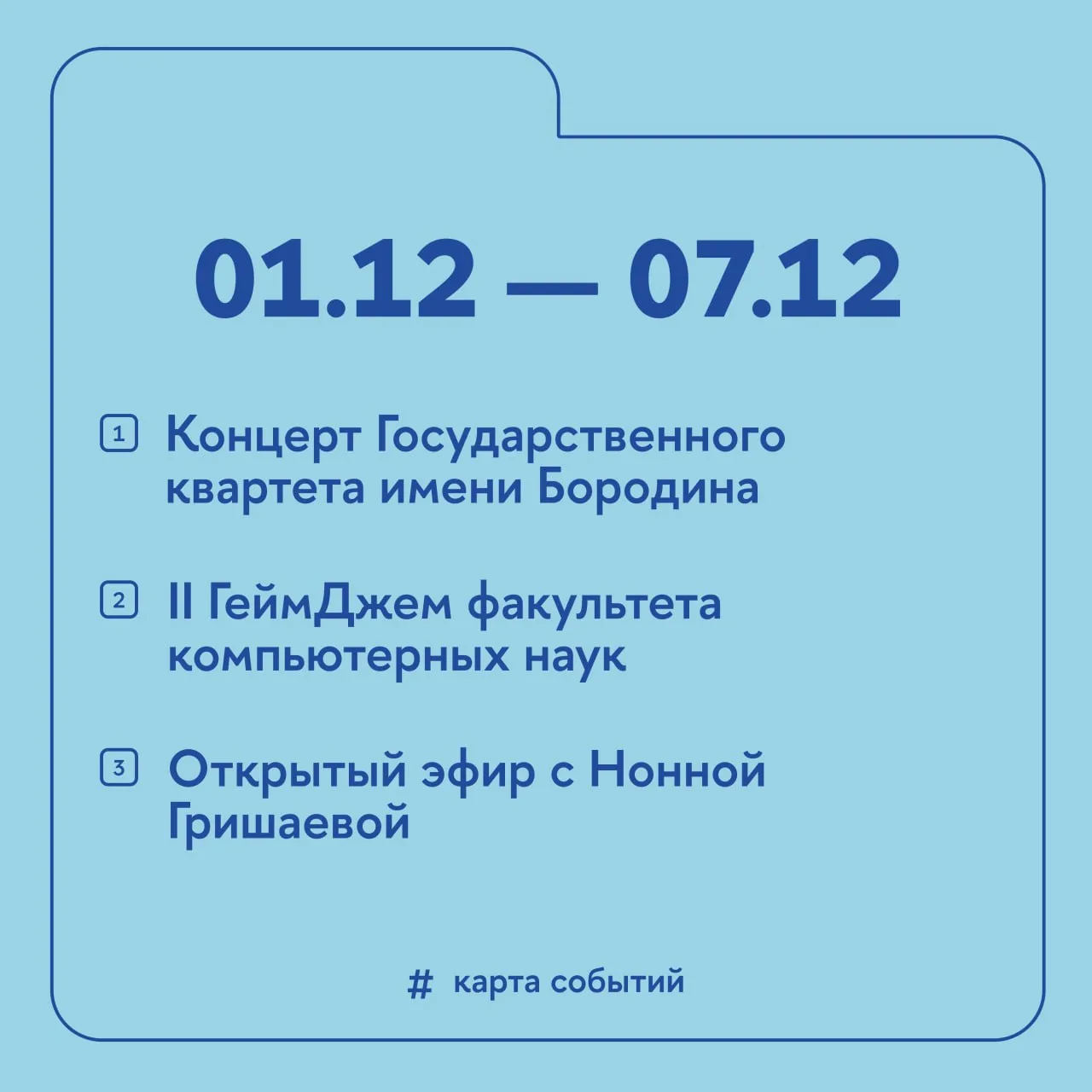 ❄️ Вот и пришла зима! А значит, остаются считаные недели до долгожданных экзаменов праздников. Как провести первую неделю, подскажет дайджест #КартаСобытий