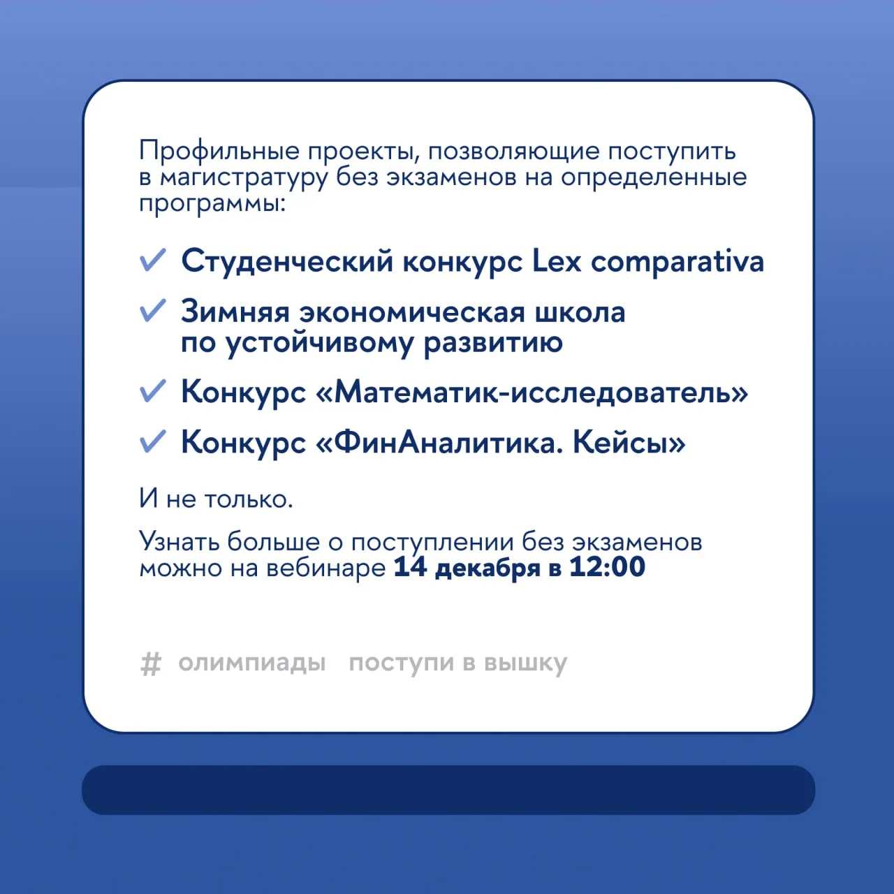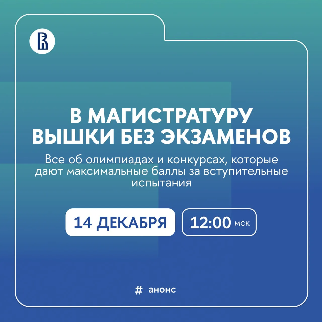 📆 Хотите узнать больше? Присоединяйтесь к вебинару «В магистратуру Вышки без экзаменов» уже в это воскресенье, 14 декабря, в 12:00 МСК