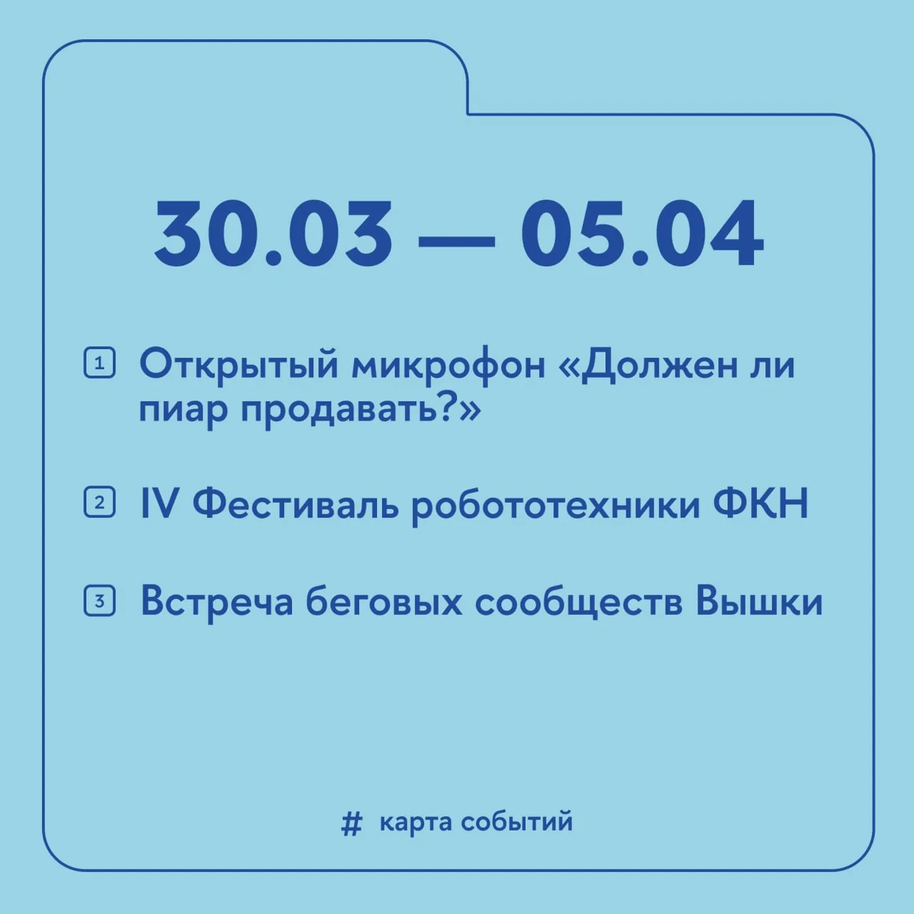 🤨 Роботы, видеоигры, бег и коммуникации: вот главные темы мероприятий этой недели. Подробности, как всегда, в дайджесте #КартаСобытий
