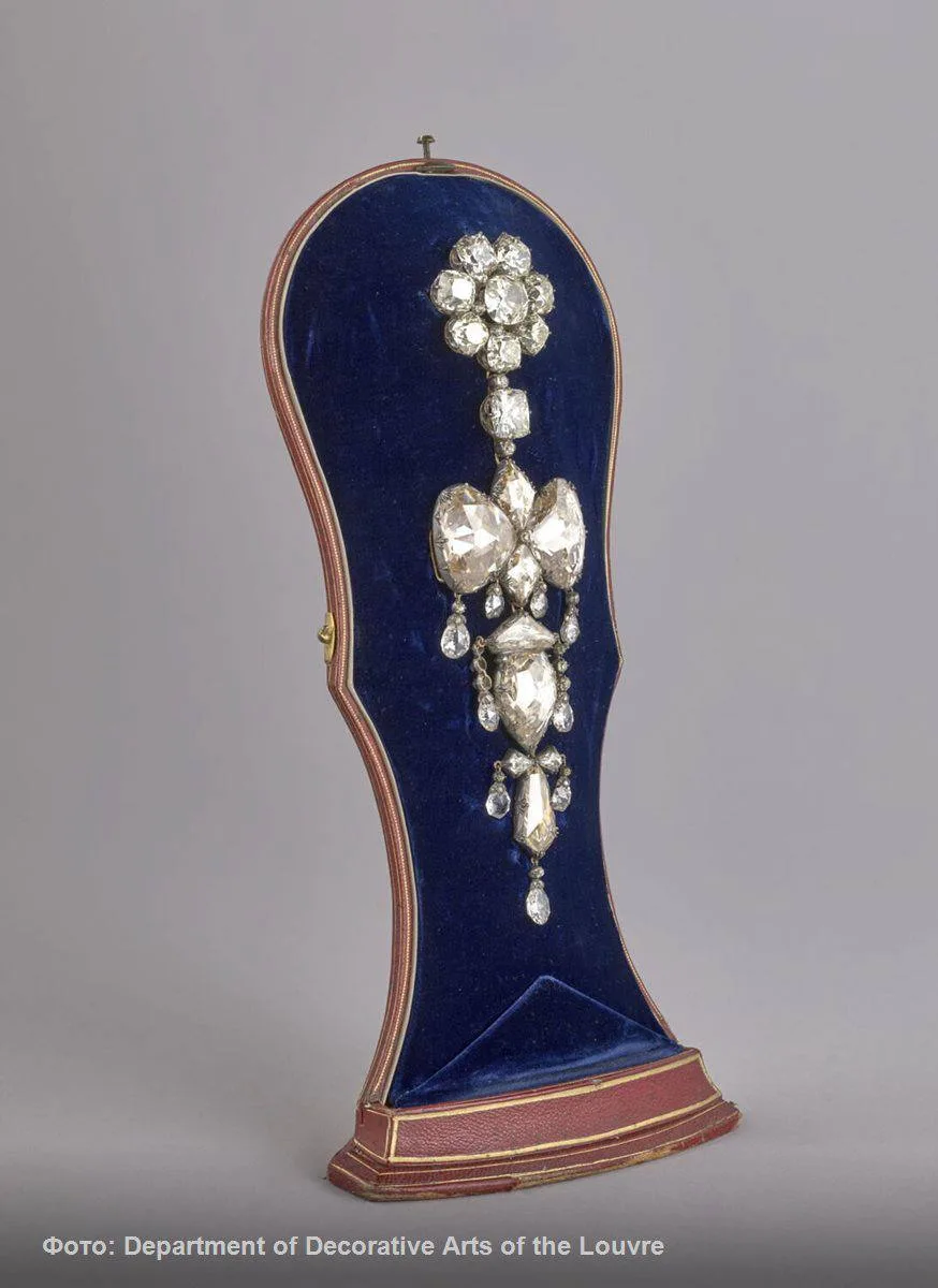 📍Диадема из жемчуга и бриллиантов, брошь в стиле рокайль и большой бриллиантовый бант для корсажа императрицы Евгении. Диадема включала почти 2 тыс. бриллиантов из числа драгоценностей Карла X и Людовика XVIII. Императрица предпочитала ее короне, считая менее формальной и куда более стильной и удобной.