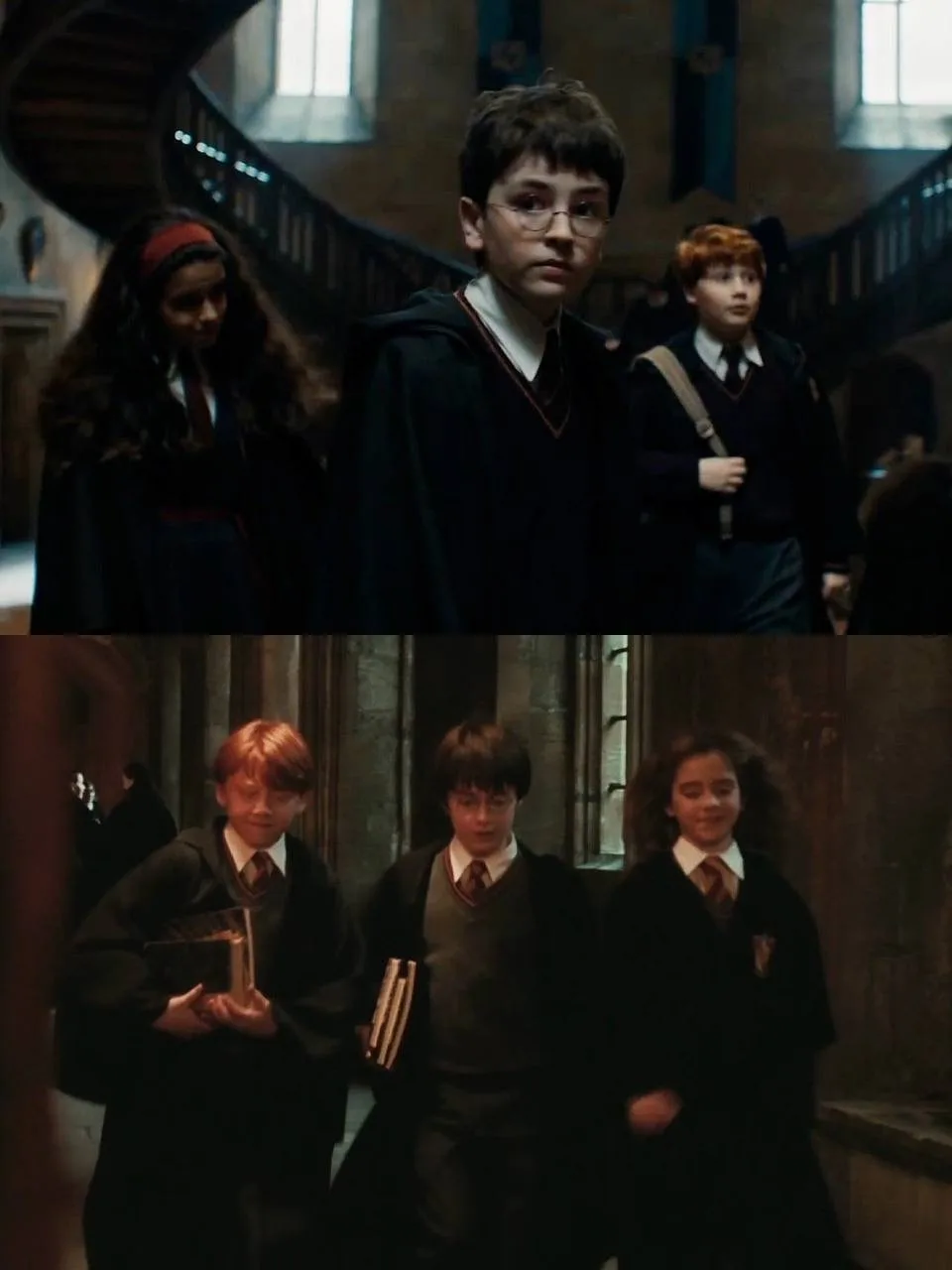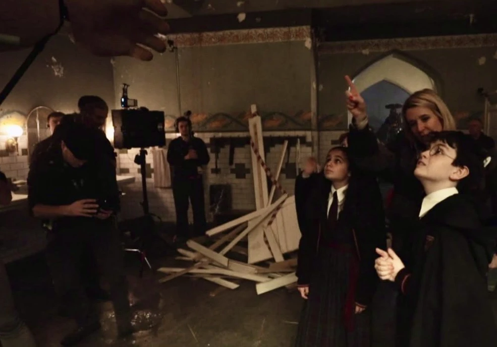 Фото за кадром. Сцена в сериале, где Рон с Гарри спасли Гермиону от нападения тролля.