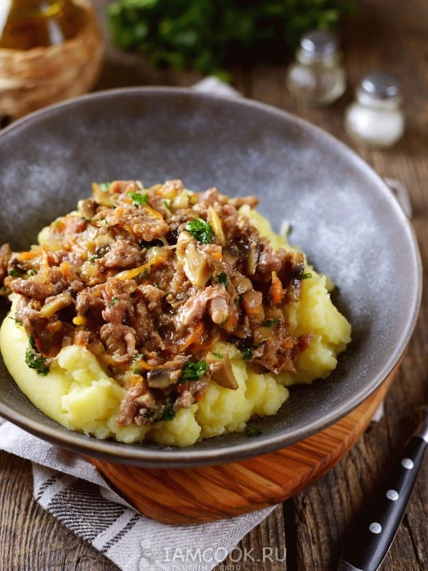Подливка из тушёнки получается такой вкусной, что с ней пюрешка тает буквально на глазах...