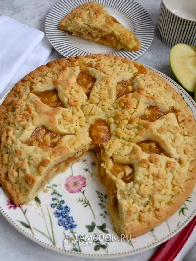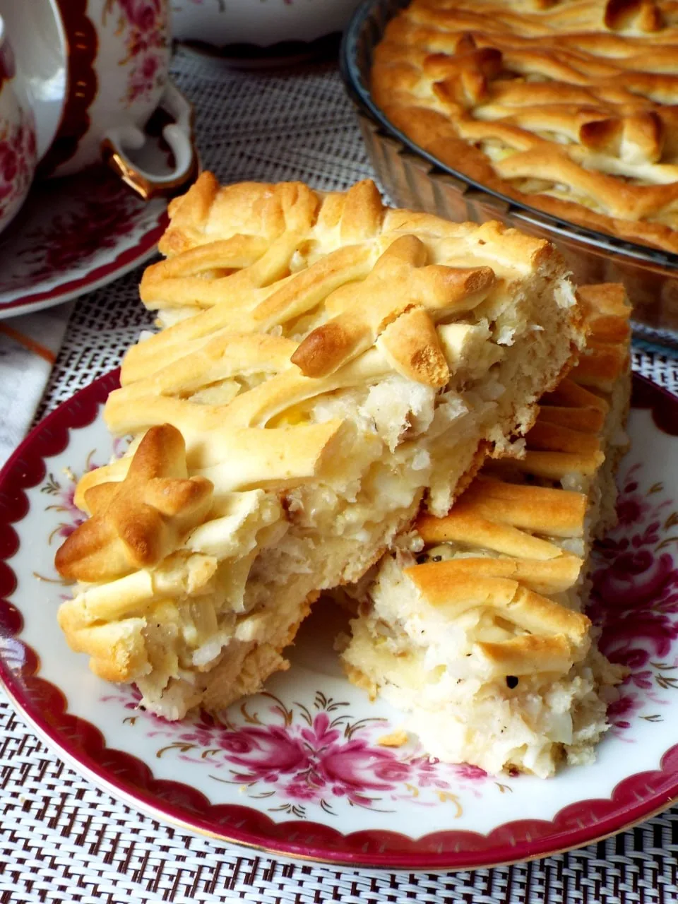 7⃣ Остаток теста раскатываем, делаем надрезы, укрываем пирог сверху, края прижимаем, в центре оставляем отверстие. Выпекаем при 180 градусах 20-25 минут до румяности.