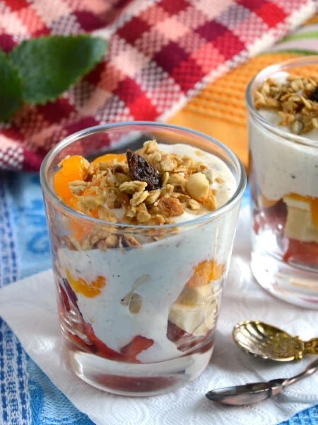 7️⃣ Фруктовый салат с мюсли и сметанным соусом