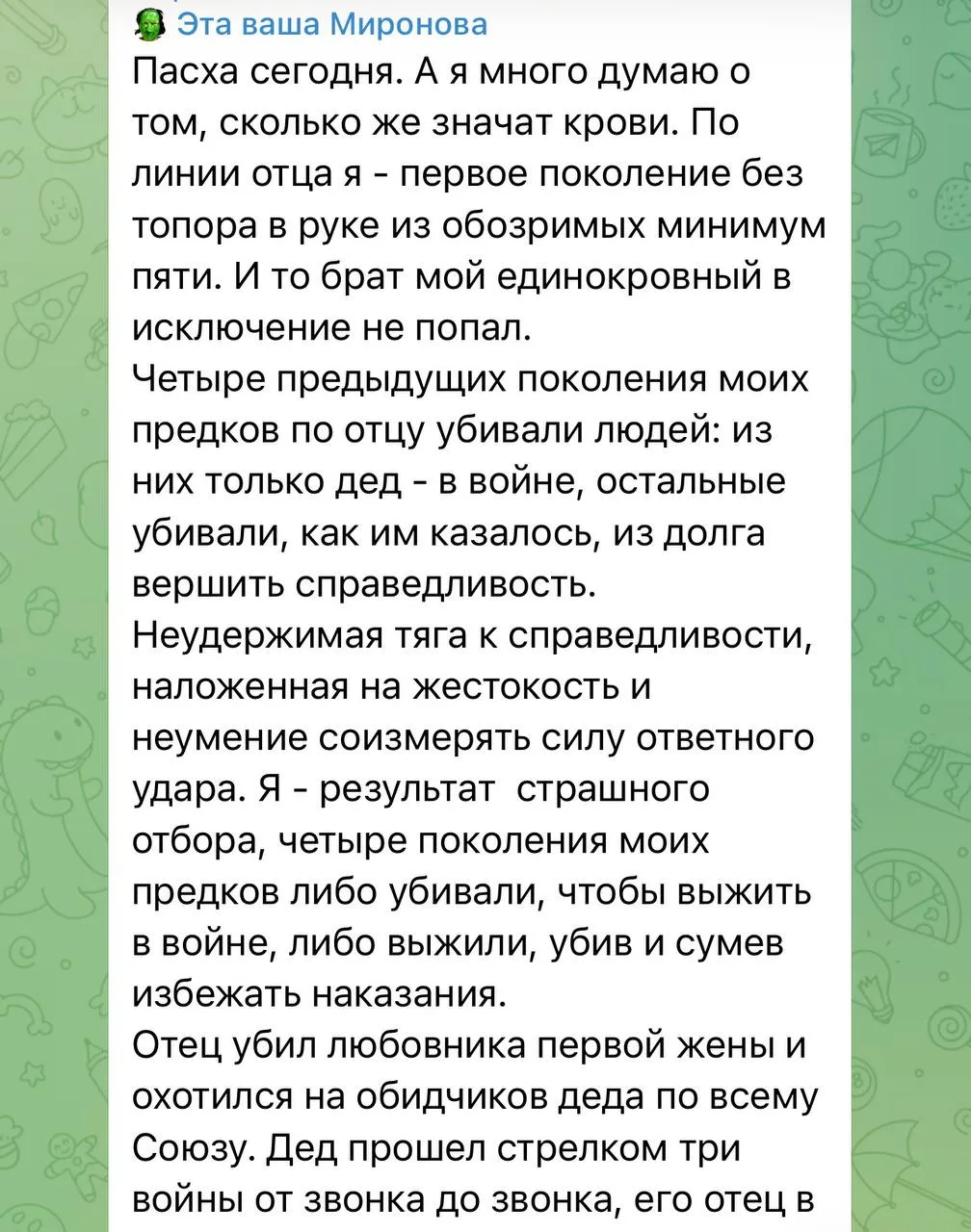 — Нет, сказала Настасья, и крепче сжала рукоятку топора, — отойди, бойся меня, бойся, сволочь! Сама себя боюсь и ты бойся!