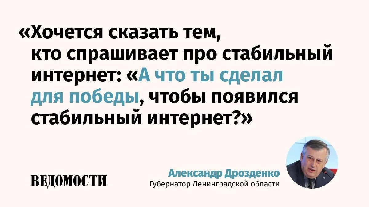 Губернатор Ленинградской области Александр Дрозденко пристыдил тех, кто жалуется на нестабильный интернет: