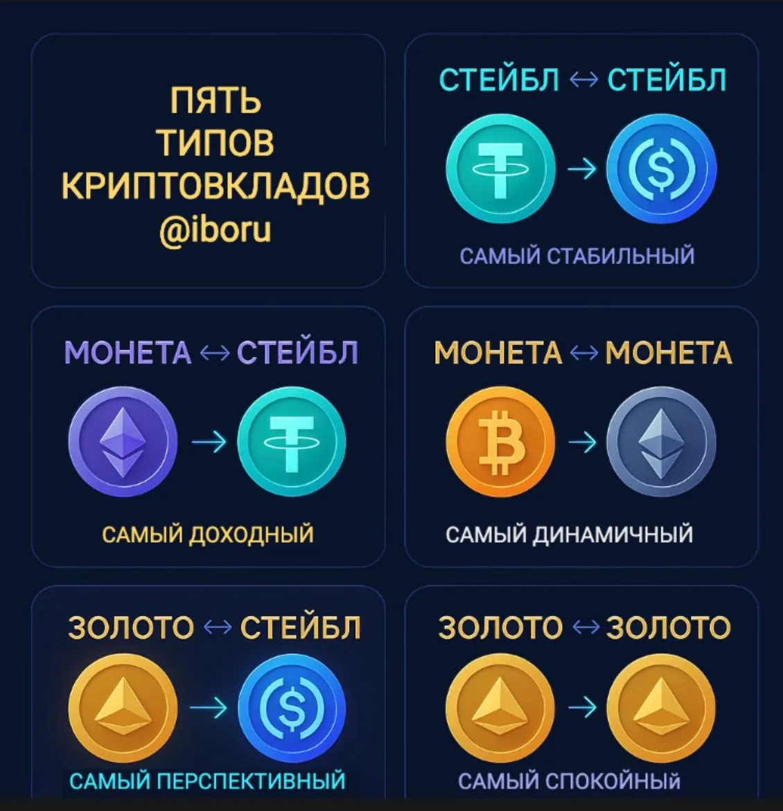 Это вклад, где одна часть стабильная (стейблкоин), а вторая — монета, которая может расти в цене.