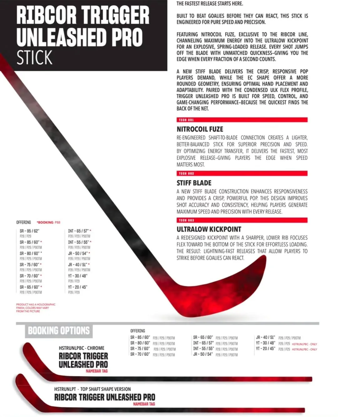Из интересного - технология Nitrocoil Fuze. Ранее мы уже видели на слайде JetSpeed FT9 Pro похожую маркировку (Neosense Fuze), которая, скорее всего, является новой фирменной технологией создания монолитной клюшки. В случае Unleashed Pro она оптимизирована под ультранизкую точку прогиба. Более жесткое монолитное соединение рукоятки с пером всегда положительно сказывалось на чувстве шайбы и эффективности передачи энергии.