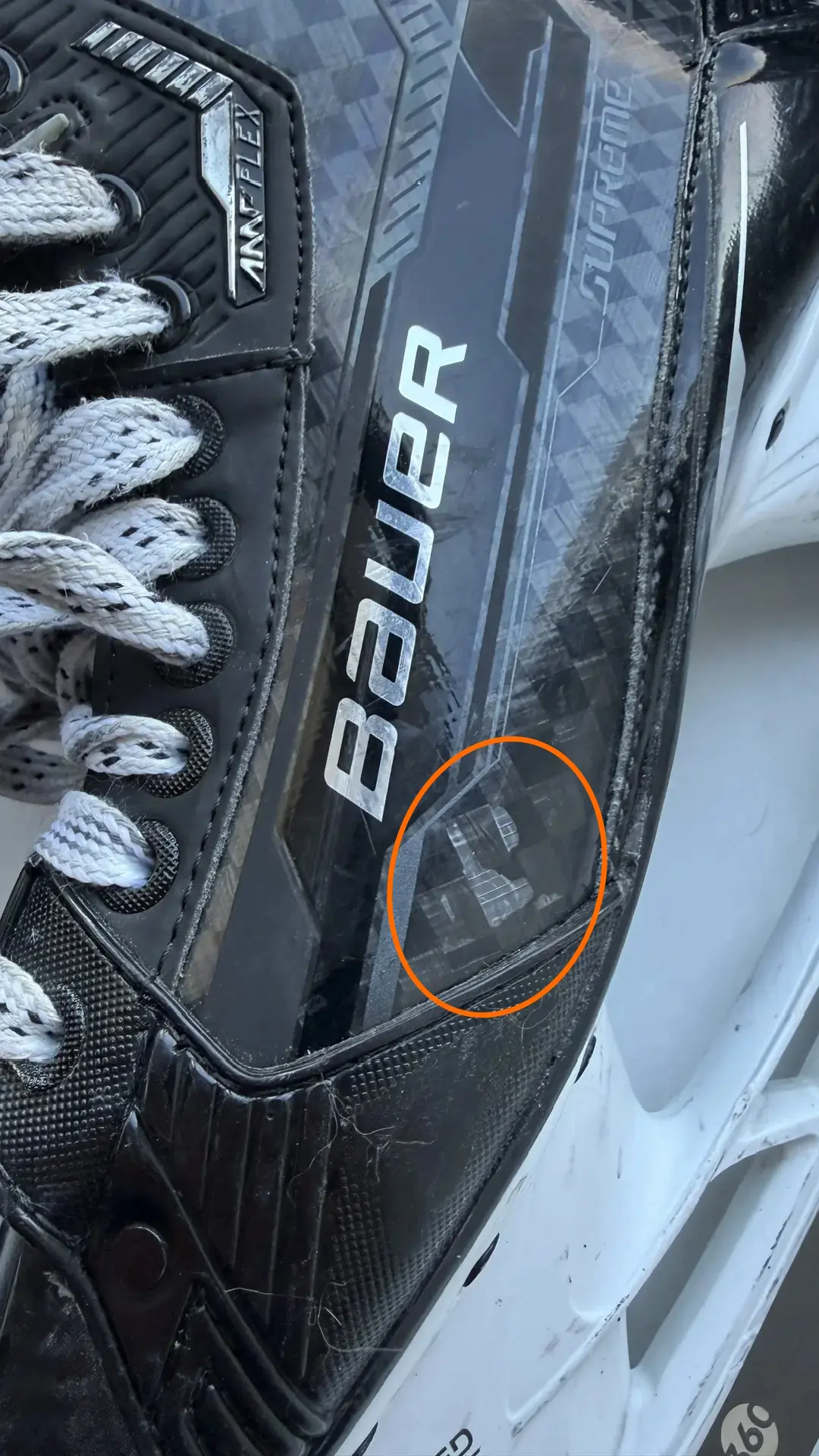 В продолжение темы корпуса ботинка коньков Bauer. Посмотрел на фото Supreme Shadow в высоком разрешении и там тоже можно увидеть такой же неидеальный принт.