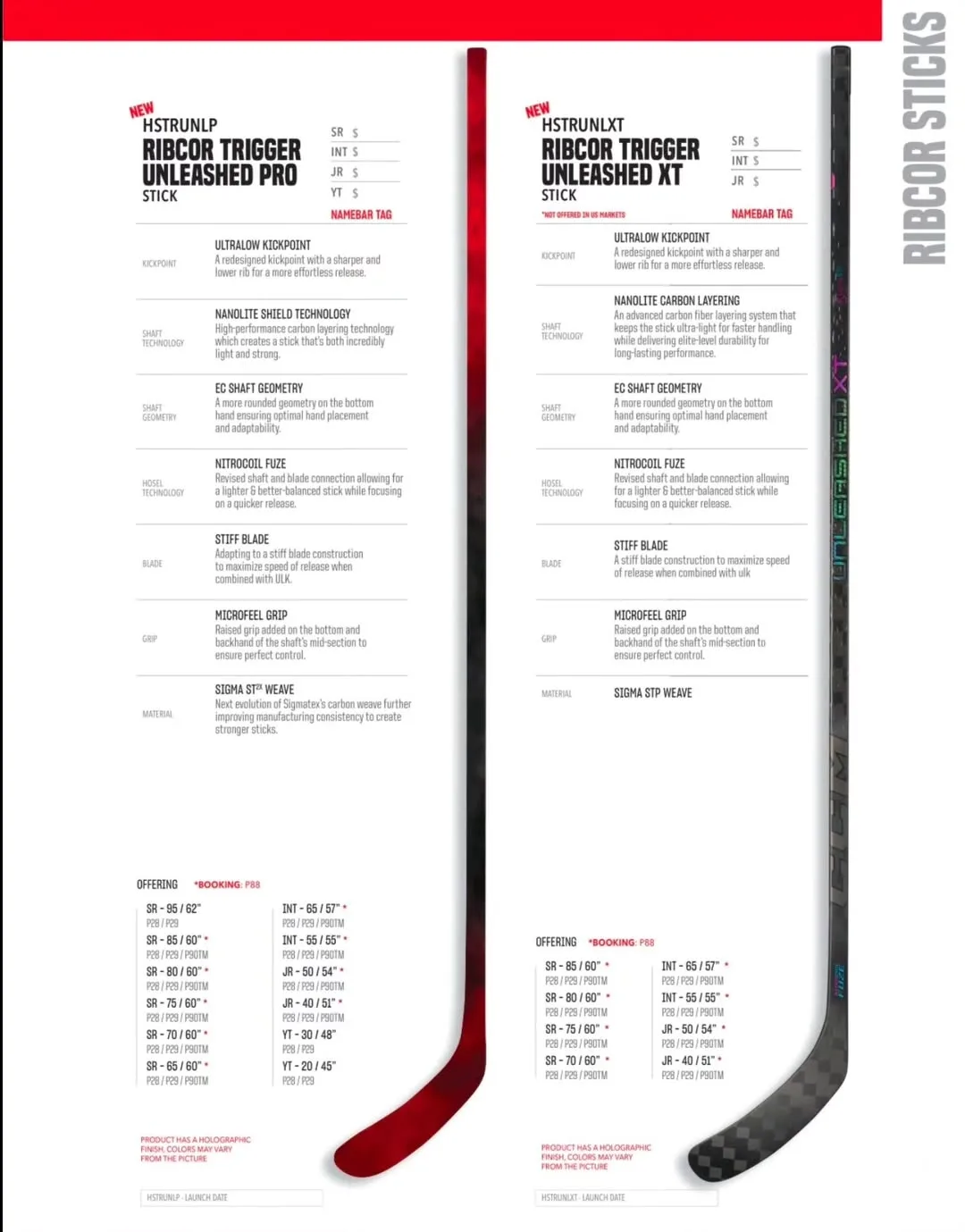 Информации о будущих новинках CCM утекает очень много. Вот слайд с двумя верхними моделями клюшек 14-го поколения семейства Ribcor: флагманская Unleashed и предтоповая Unleashed XT.