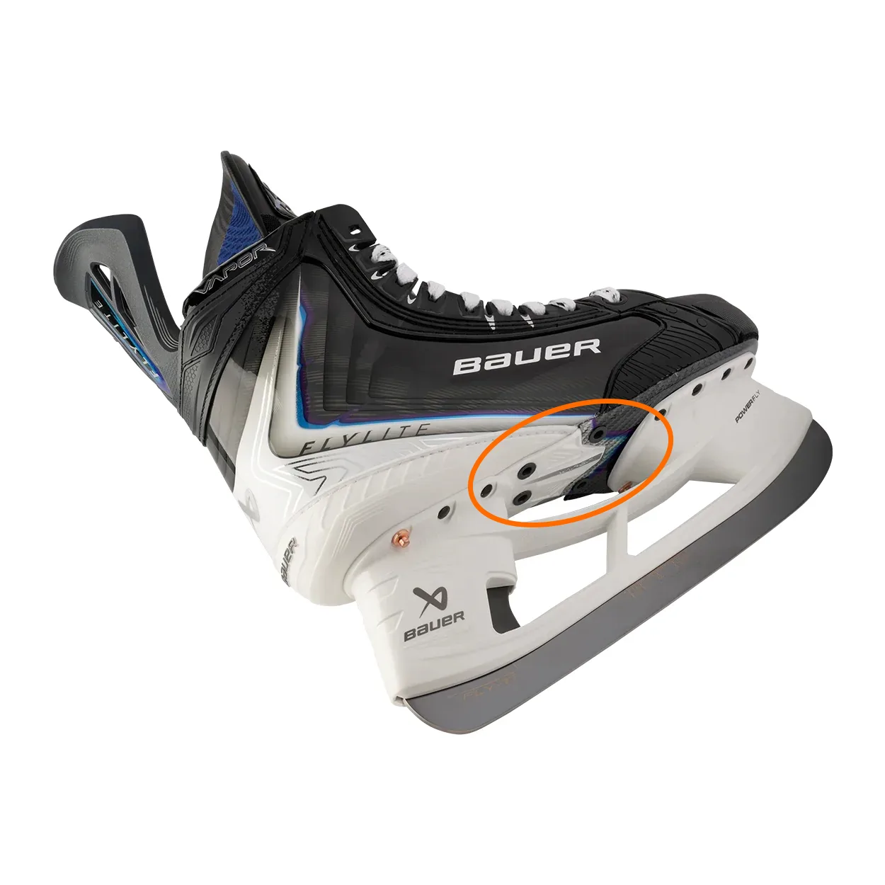 1. Уже после того, как на ранних стадиях разработки конька фото для маркетинга были сделаны с четырьмя отверстиями, в Bauer решили выпускать в продажу ботинок только с двумя отверстиями и в производство пошла именно такая версия.