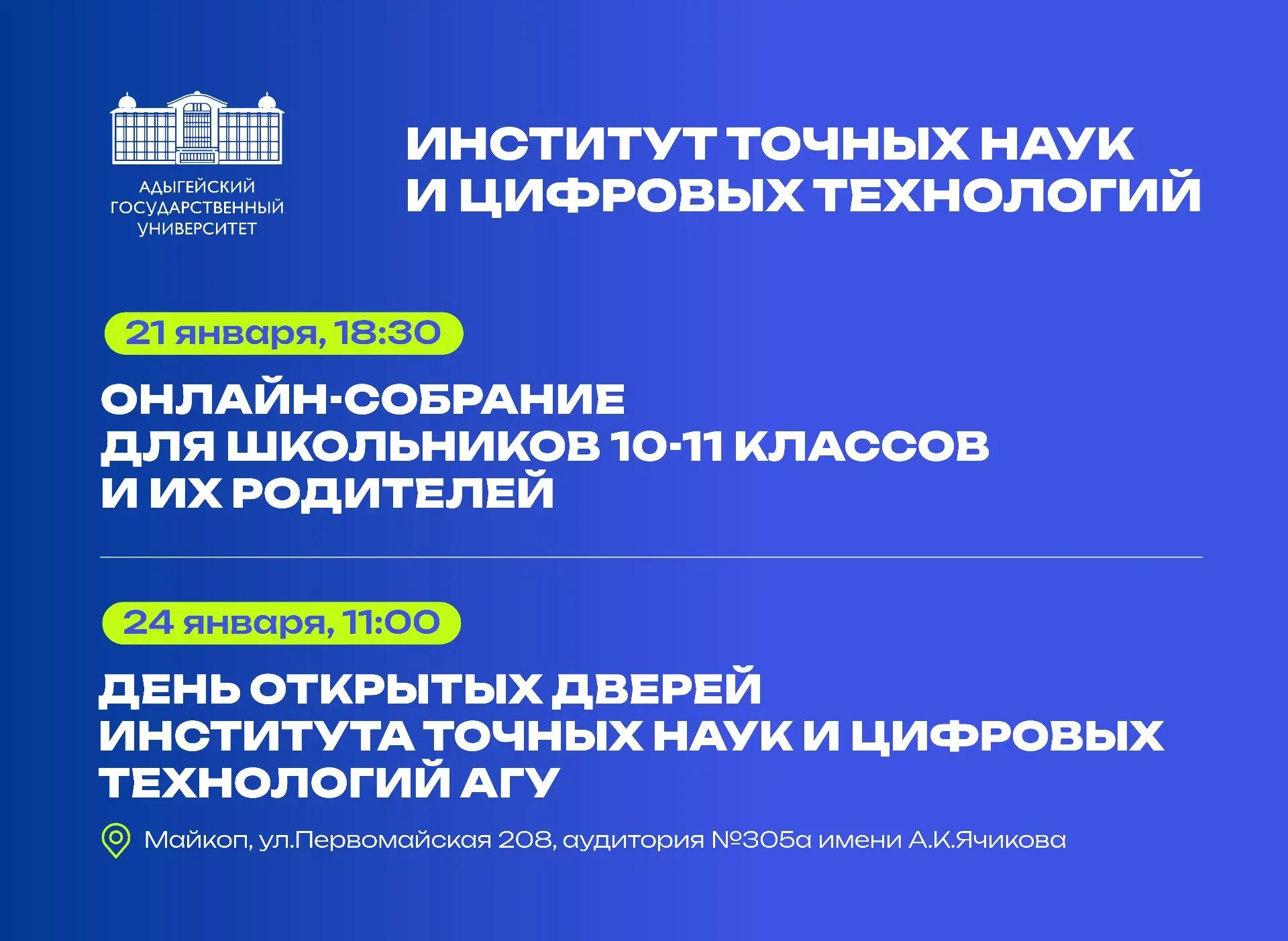 ⚡Онлайн-собрание и День открытых дверей в Институте точных наук и цифровых технологий Адыгейского государственного университета