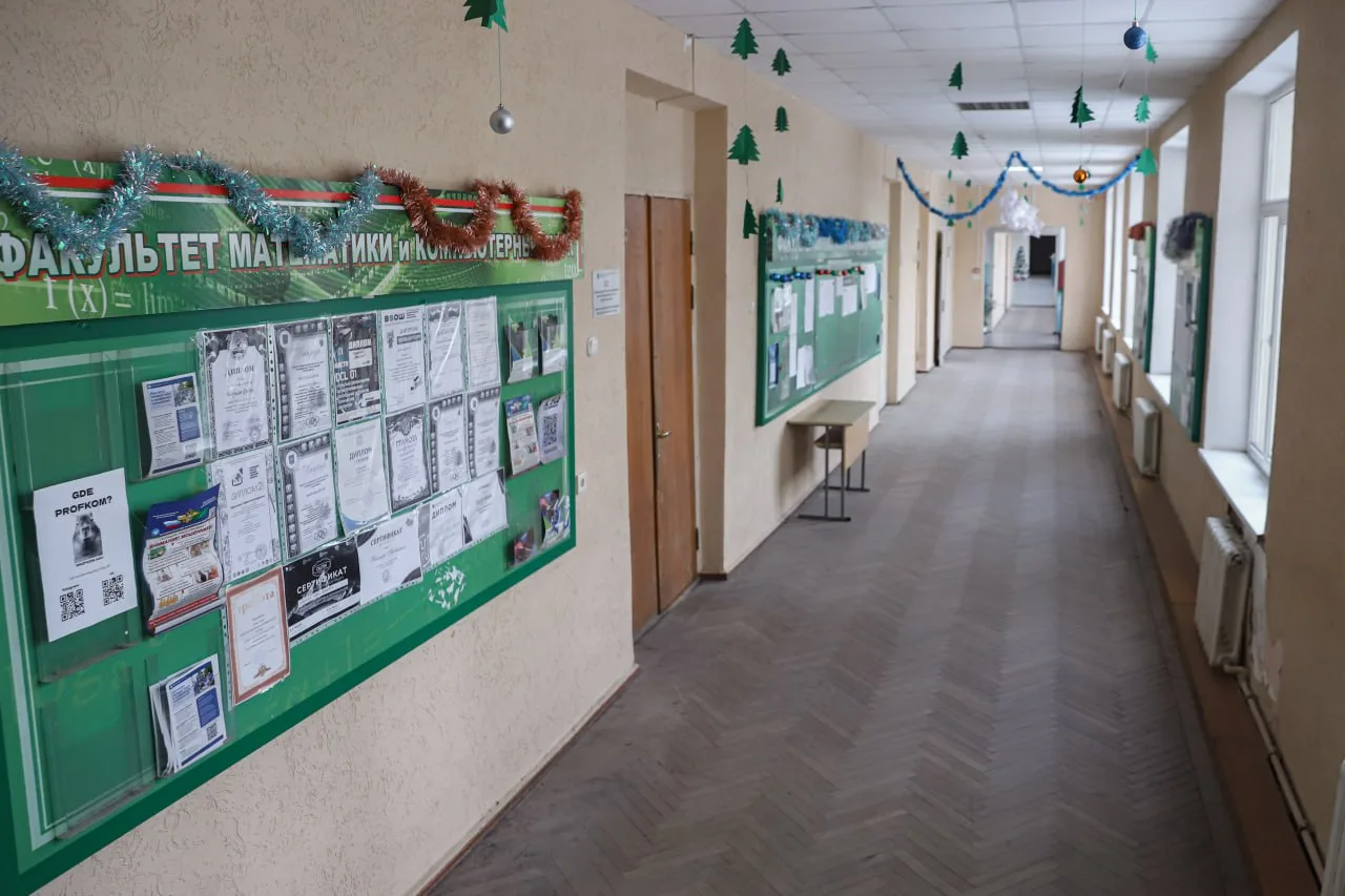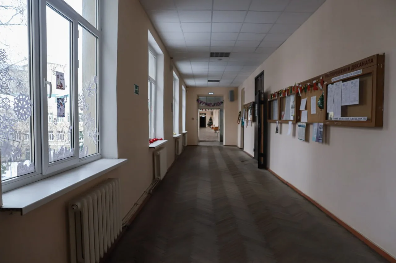 Новогодние каникулы принесли в Адыгейский государственный университет редкую тишину. Заснеженный внутренний дворик, пустые коридоры и замершие в ожидании лекций аудитории — будто и не АГУ вовсе.