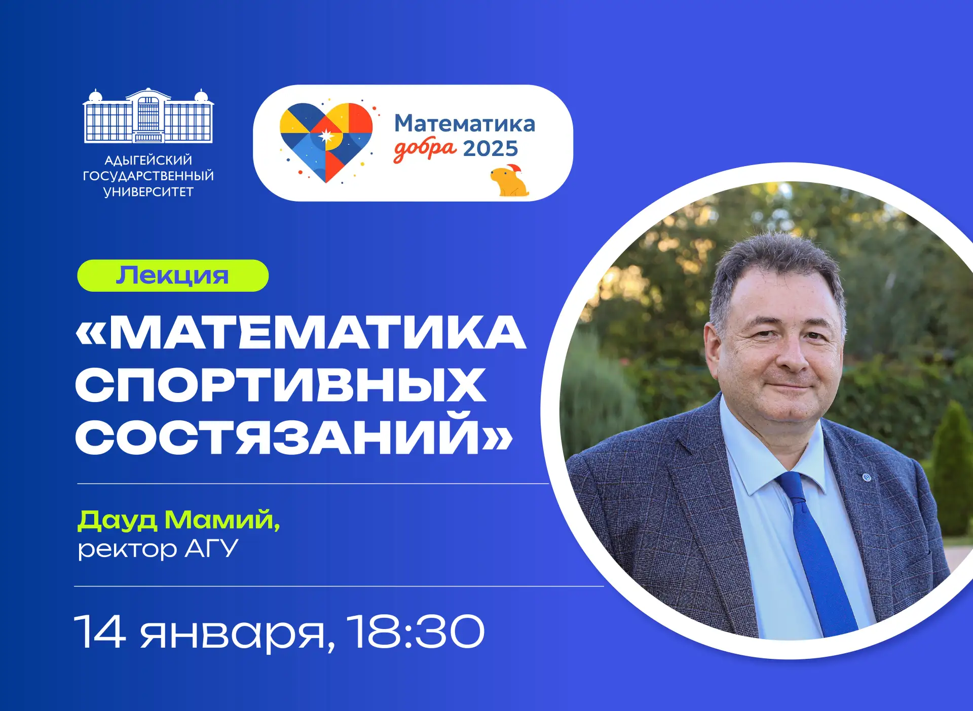 Уже сегодня, 14 января в 18:30, об этом и многом другом расскажет ректор Адыгейского государственного университета Дауд Мамий в своей лекции «Математика спортивных состязаний».