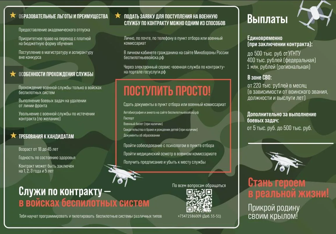🇷🇺 Военная служба по контракту в войсках беспилотных систем (БпЛА)