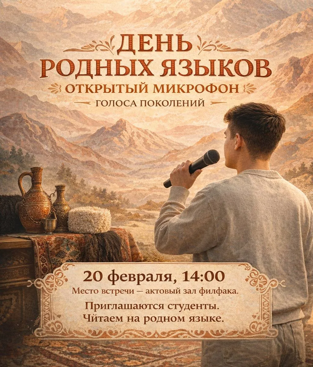 🌍 В преддверии Международного дня родных языков филфак запускает «Открытый микрофон», где главными героями станут студенты-филологи и их родная речь.
