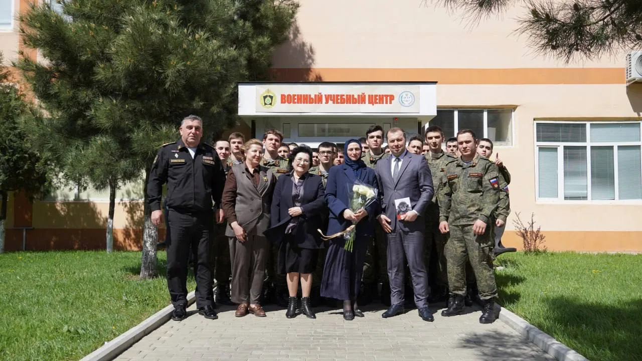 Сегодня Сапижат Мазаева занимается гуманитарной помощью и патриотическим воспитанием молодежи. Встреча прошла в доверительной обстановке: гостья поделилась личной историей и призвала будущих военных хранить память о героях.