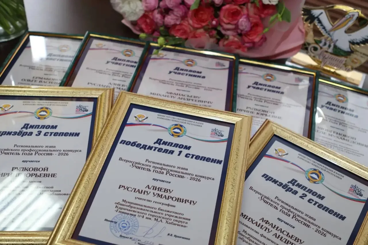Вчера в Черкесске на торжественном мероприятии были подведены итоги главного профессионального состязания педагогов. Руслан Умарович Алиев, учитель географии гимназии № 4 г. Карачаевска, удостоен диплома I степени и премии Главы КЧР Р.Б. Темрезова.