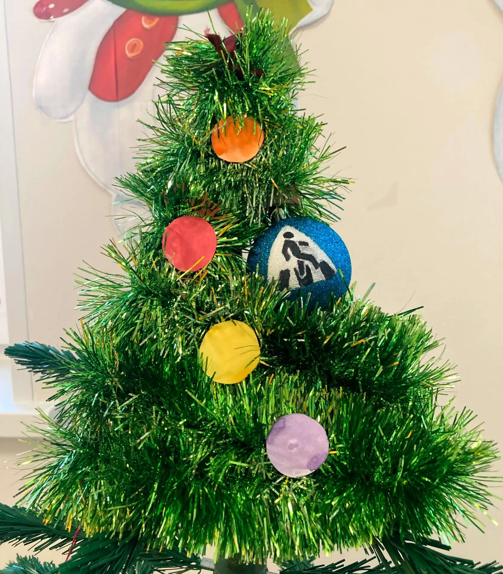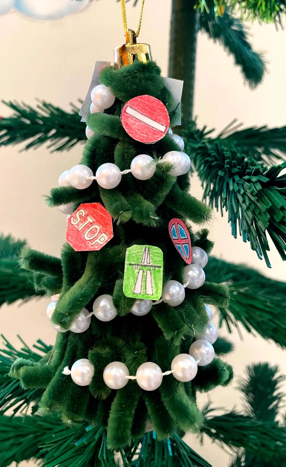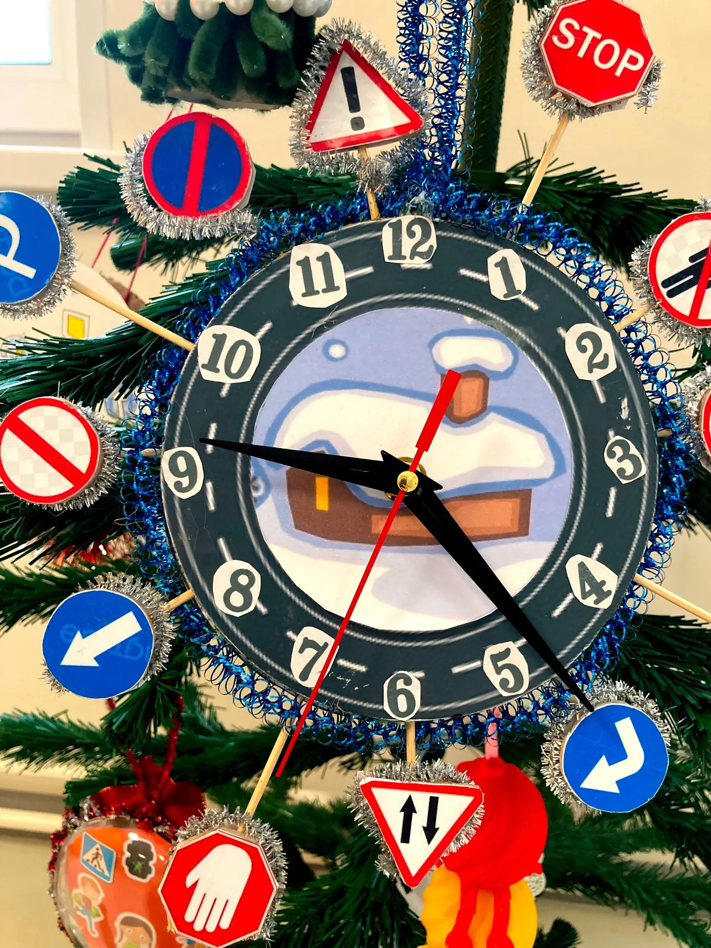 🌲На её пушистых зелёных ветвях разместились необычные игрушки, каждая из которых рассказывает свою историю и служит наглядным пособием по правилам дорожного движения. Знаки дорожного движения напоминают о необходимости соблюдать порядок и внимательности.