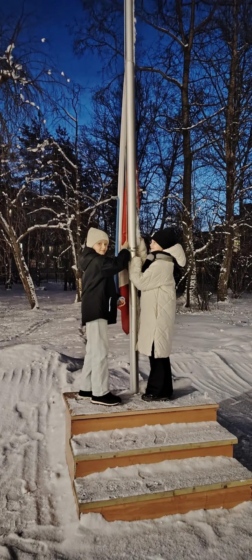 Сегодня в начальной школе состоялась первая в новом году традиционная линейка поднятия флага для 4А, 4Б и 4В классов.