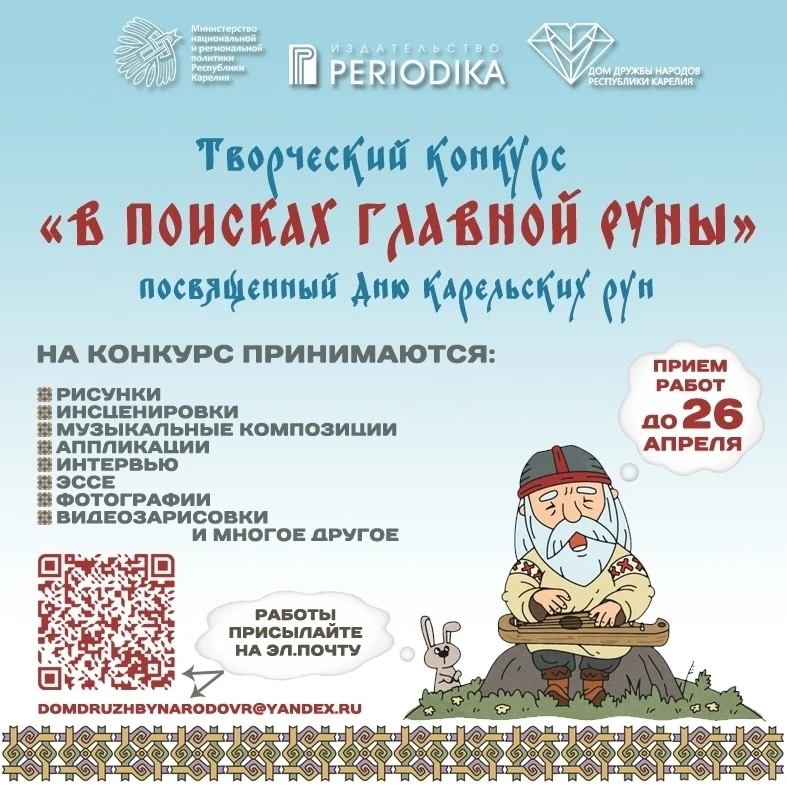📩 Работы отправляйте на электронную почту Дома дружбы народов Карелии: domdruzhbynarodovr@yandex.ru (в теме письма укажите: «Конкурс «В поисках главной руны»).