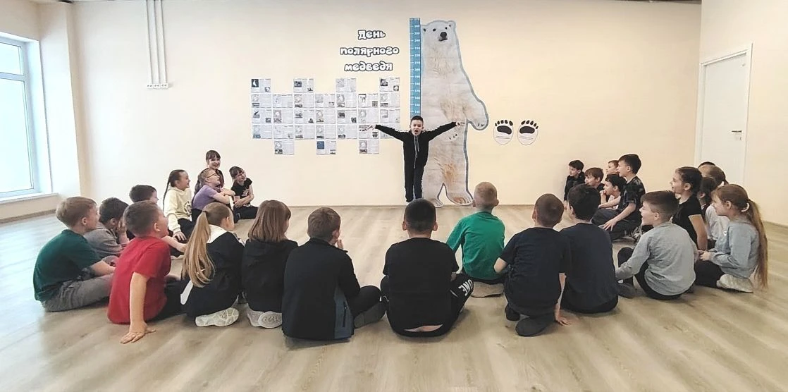🐾Мы подготовили для школьников ростомер, который помог узнать, насколько велик наш арктический друг - белый медведь,