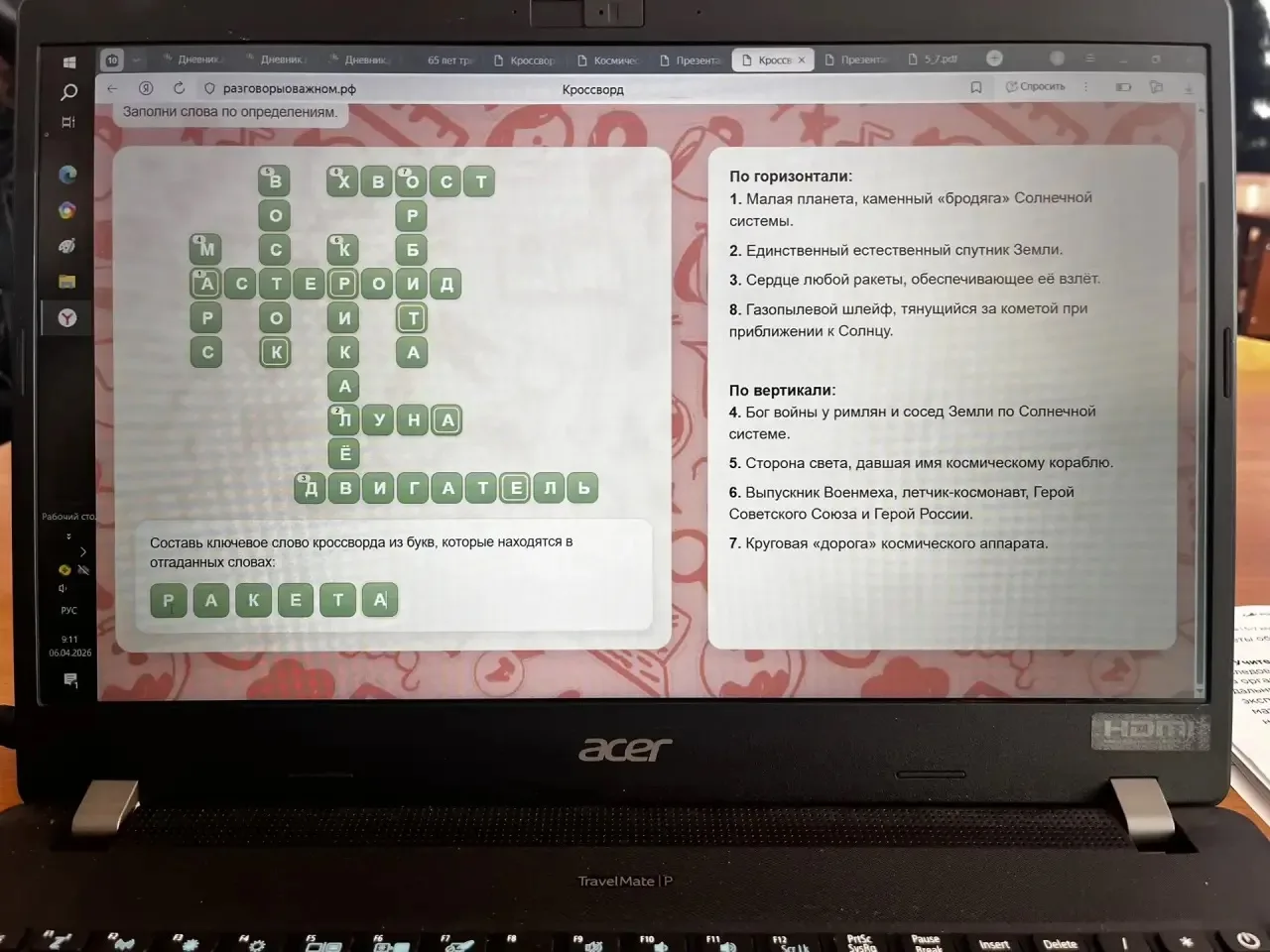 Классные руководители поделились с учениками знаниями об истории и текущем состоянии отечественной космонавтики, осветили успехи страны в этой области и будущие перспективы развития.