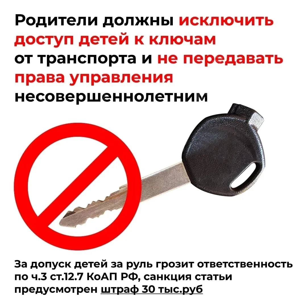 Госавтоинспекция призывает: держите ключи от автомобиля в недоступном для детей месте. Ваша бдительность — это жизнь и здоровье вашего ребенка!