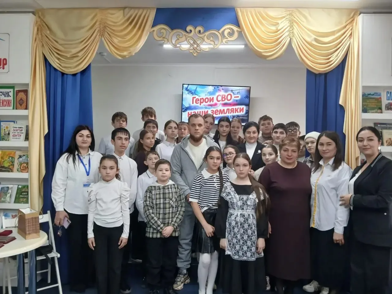 Ребята активно включились в обсуждение и не стеснялись задавать вопросы о жизни и службе героя. Особенно выделялся среди участников Батыр Дидухов— юнармеец, учащийся 7 класса МБОУ СОШ № 2 а. Кошехабль. Он проявил инициативу и смелость, задавая вопросы и интересуясь жизненным путем Сергея Юрьевича.
