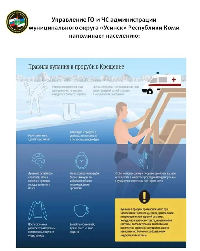 В приближении праздника Крещение, напоминаем Вам о правилах безопасности при купании в проруби ‼️Просим Вас быть максимально осторожными и внимательными