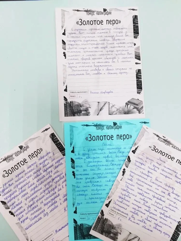 📝 С целью повышения мотивации учащихся к изучению русского языка, формирования грамотной письменной речи, выявления сформированности каллиграфических навыков у учащихся, развития внимания, мелкой моторики, умения концентрироваться на работе в 5а и 5г классах (учитель Светлова Е.М.) был проведён конкурс каллиграфии "Золотое перо".