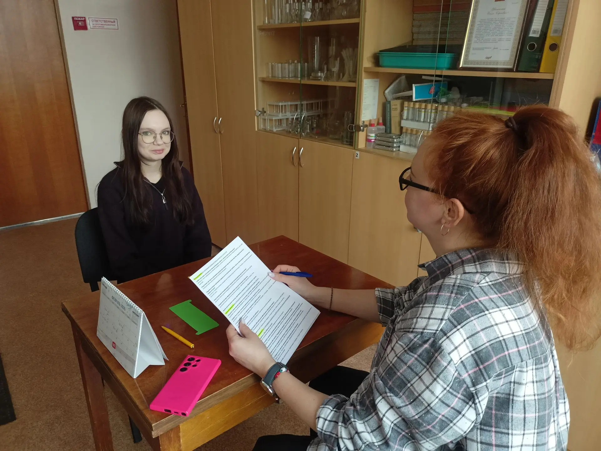 Особое внимание было уделено организации практической части занятия, в ходе которой учащиеся решали увлекательные задания, включавшие головоломки-кроссворды, содержащие названия различных профессий, и прохождение первого реального опыта собеседований. Каждому участнику предлагалось вытянуть карточку с определенной вакантной должностью и отвечать на поставленные организаторами вопросы, имитируя реальную ситуацию разговора с работодателем.