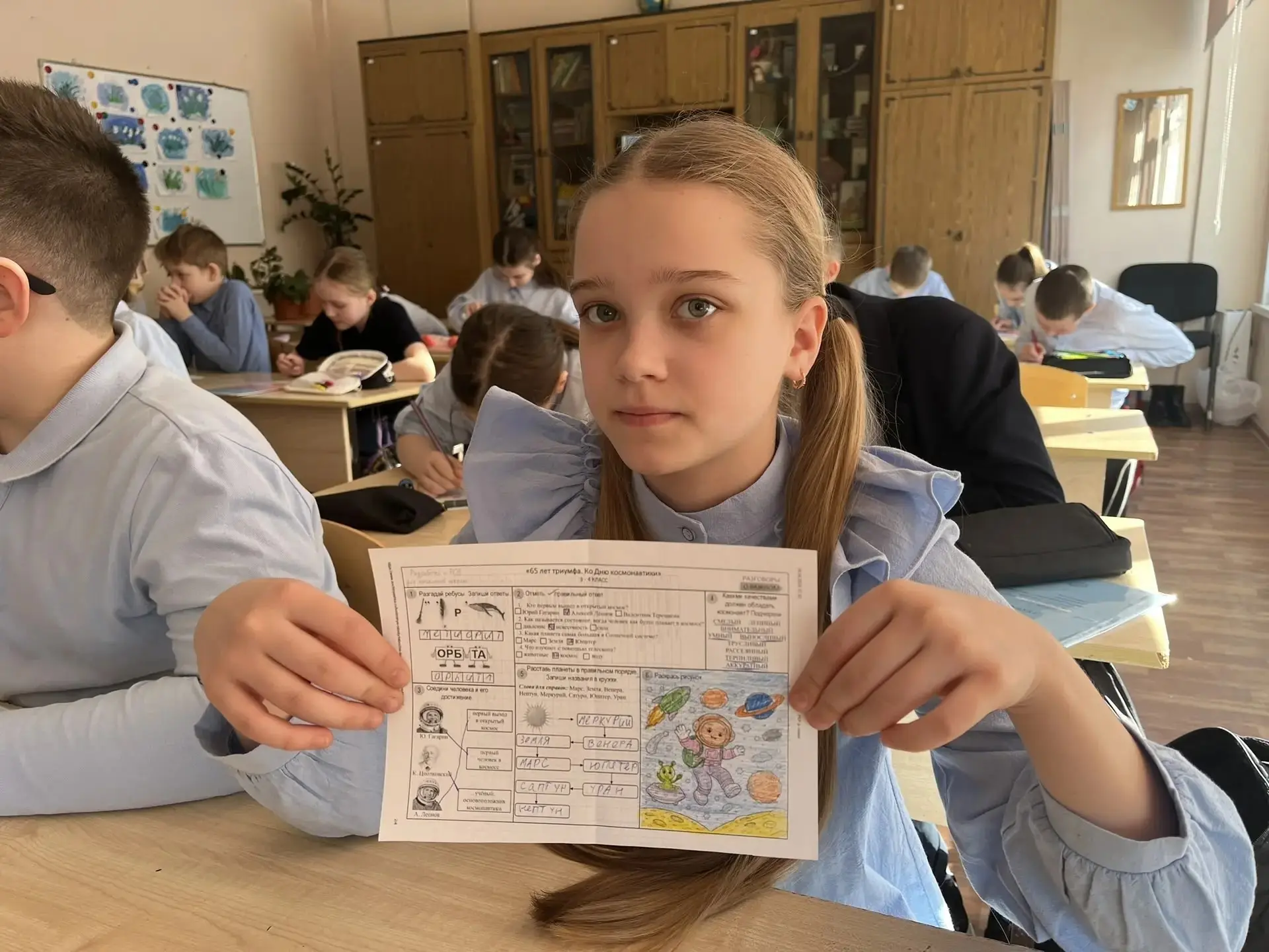 1‑й отряд отправился в Музей боевой и трудовой славы. Там ребят ждала захватывающая игра «Великие битвы Великой войны». Школьники не только узнали много нового о героических страницах истории, но и проверили свои знания в интерактивной форме. Экскурсовод увлекательно рассказывал о событиях военных лет, а ребята активно участвовали в обсуждении и отвечали на вопросы.