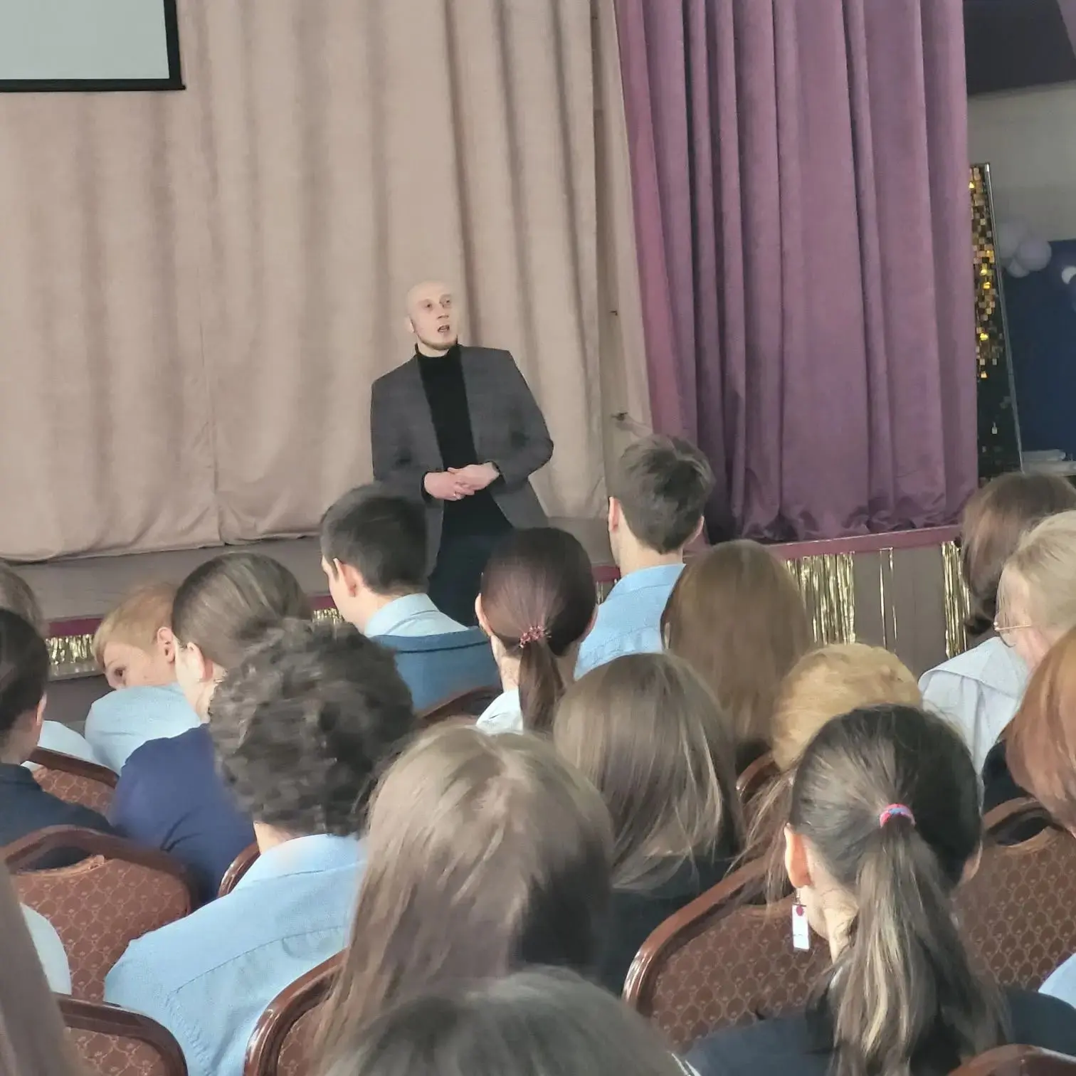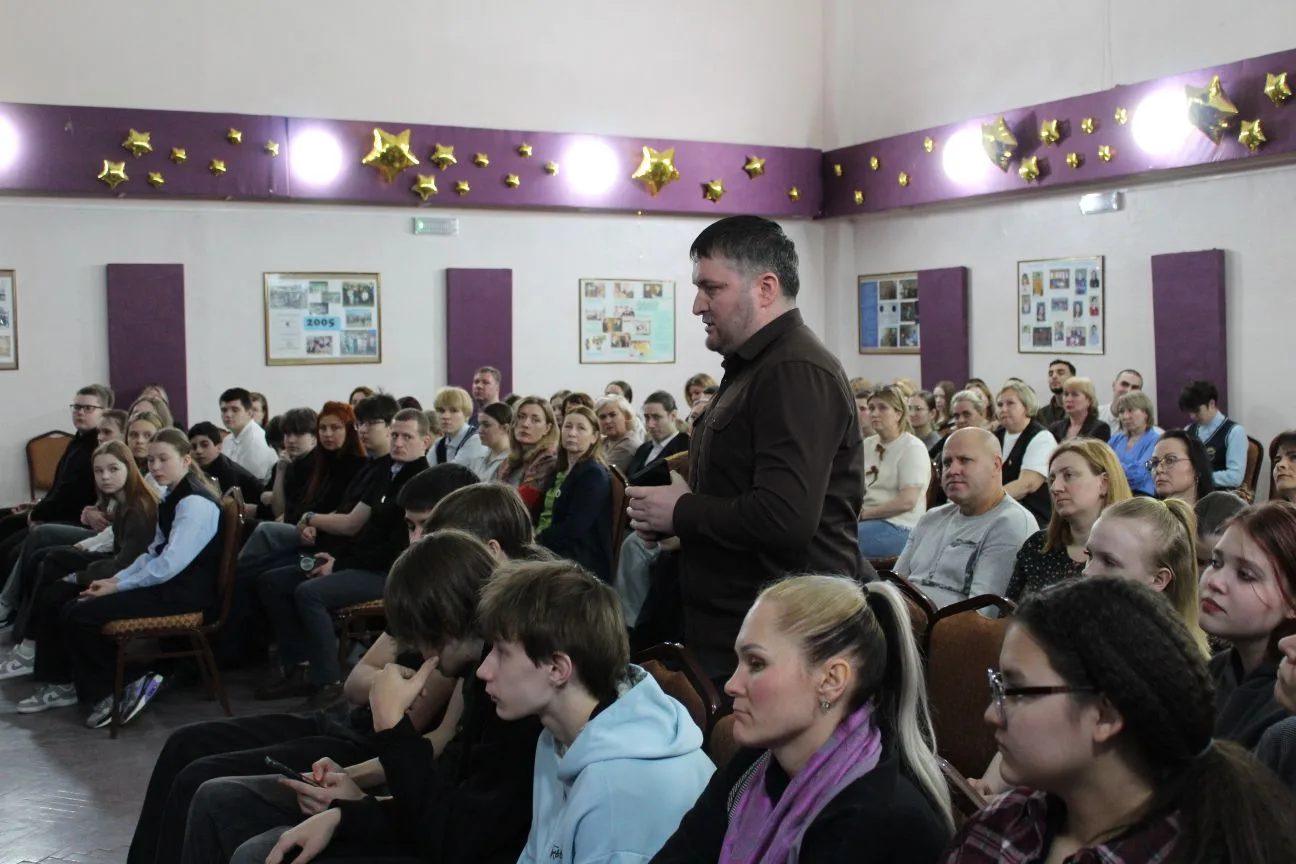 2‑й и 4‑й отряды собрались в актовом зале на особенную встречу. В честь Дня детской книги (который отмечается 2 апреля) перед ребятами выступил Анатолий Михайлович Валевский — талантливый детский писатель и, что особенно удивительно, скромный учитель истории нашего учебного заведения! Встреча получилась вдохновляющей: писатель поделился секретами творчества, рассказал забавные истории из своей практики, ответил на многочисленные вопросы ребят и даже оставил автографы на память.