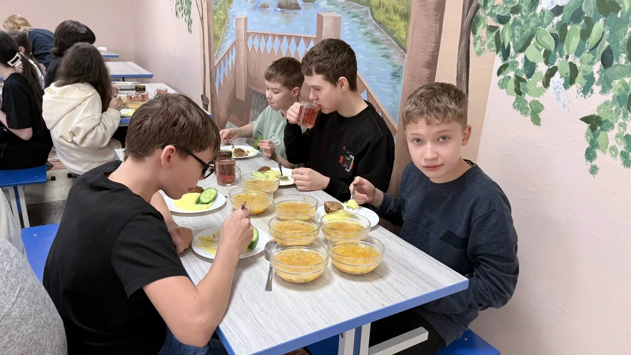 Затем наступил долгожданный момент — обед! Он оказался по‑настоящему вкусным и насыщенным, и все ребята остались очень довольны.
