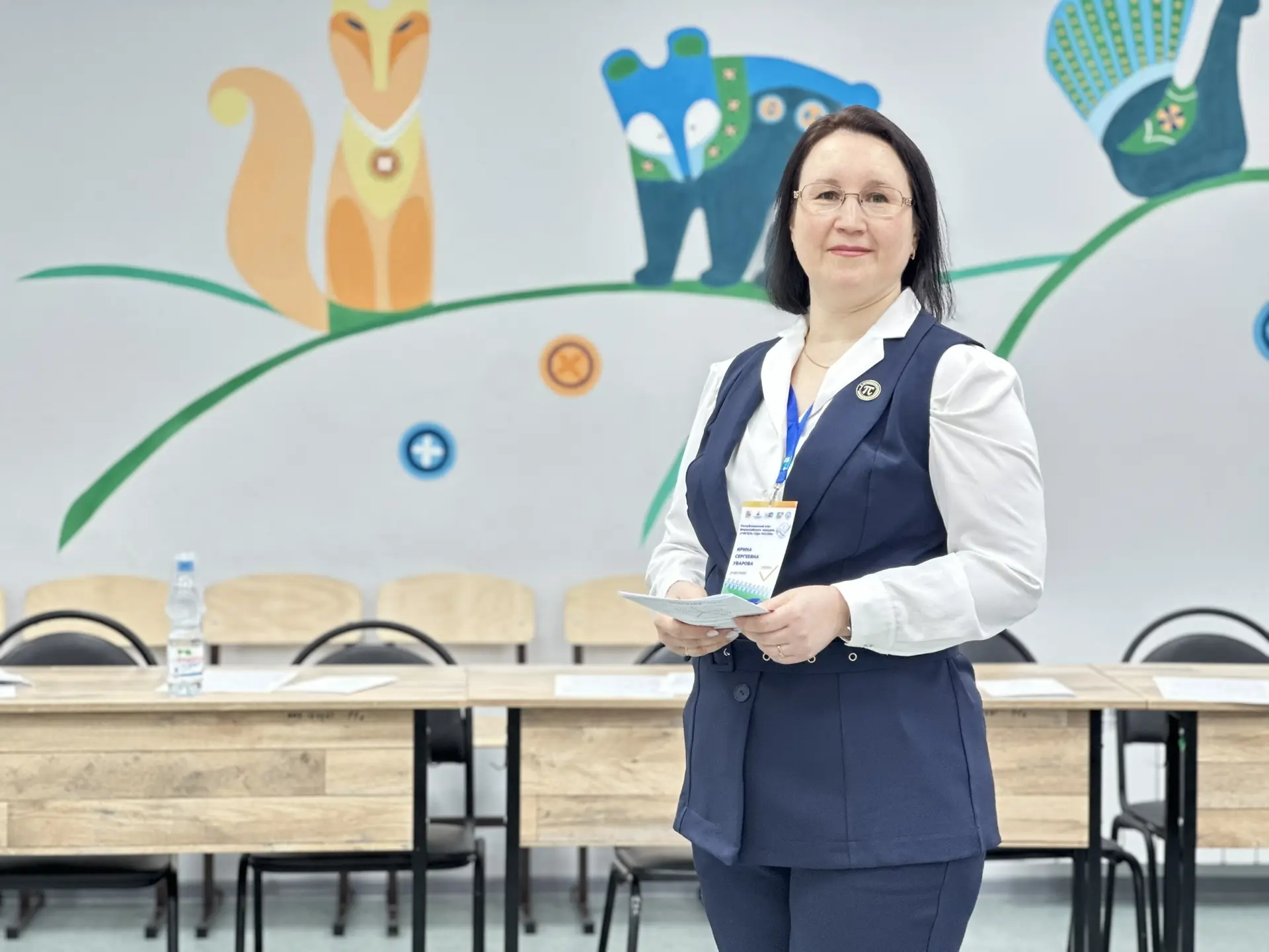 Сегодня для Ирины Сергеевны важный день — первое конкурсное испытание «Педагогическое интервью». Это момент, когда за словами стоит опыт, за ответами — годы труда, а за волнением — искренняя преданность своему делу.