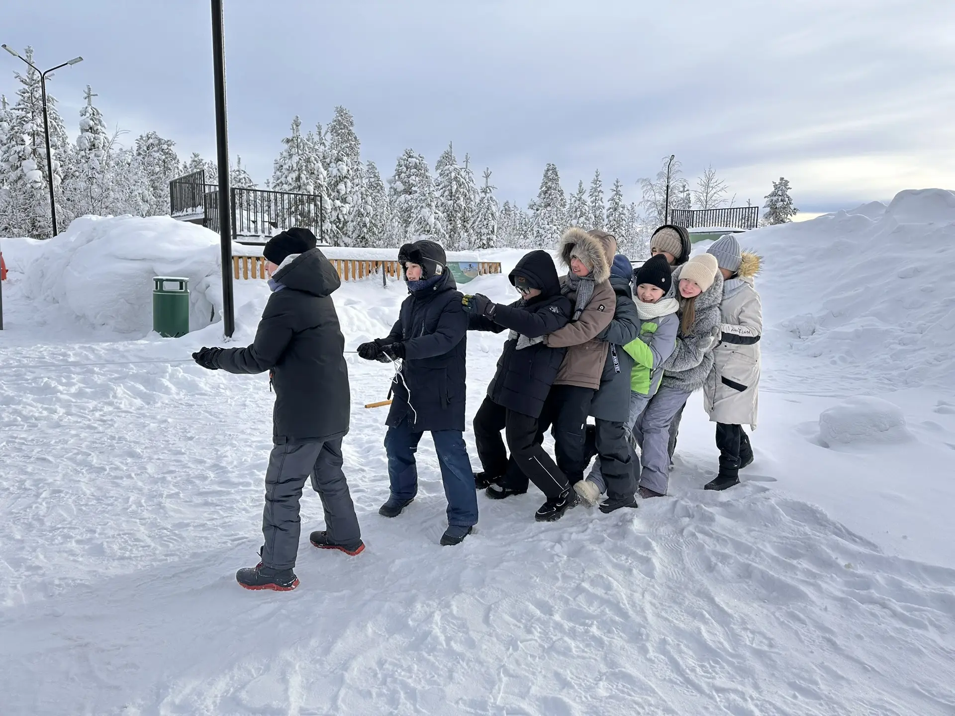 Перетягивание каната — это не просто сила, это командный дух. По центру — граница зимы. И каждая команда старалась перетянуть соперников за линию. Сколько поддержки, сколько дружных криков!