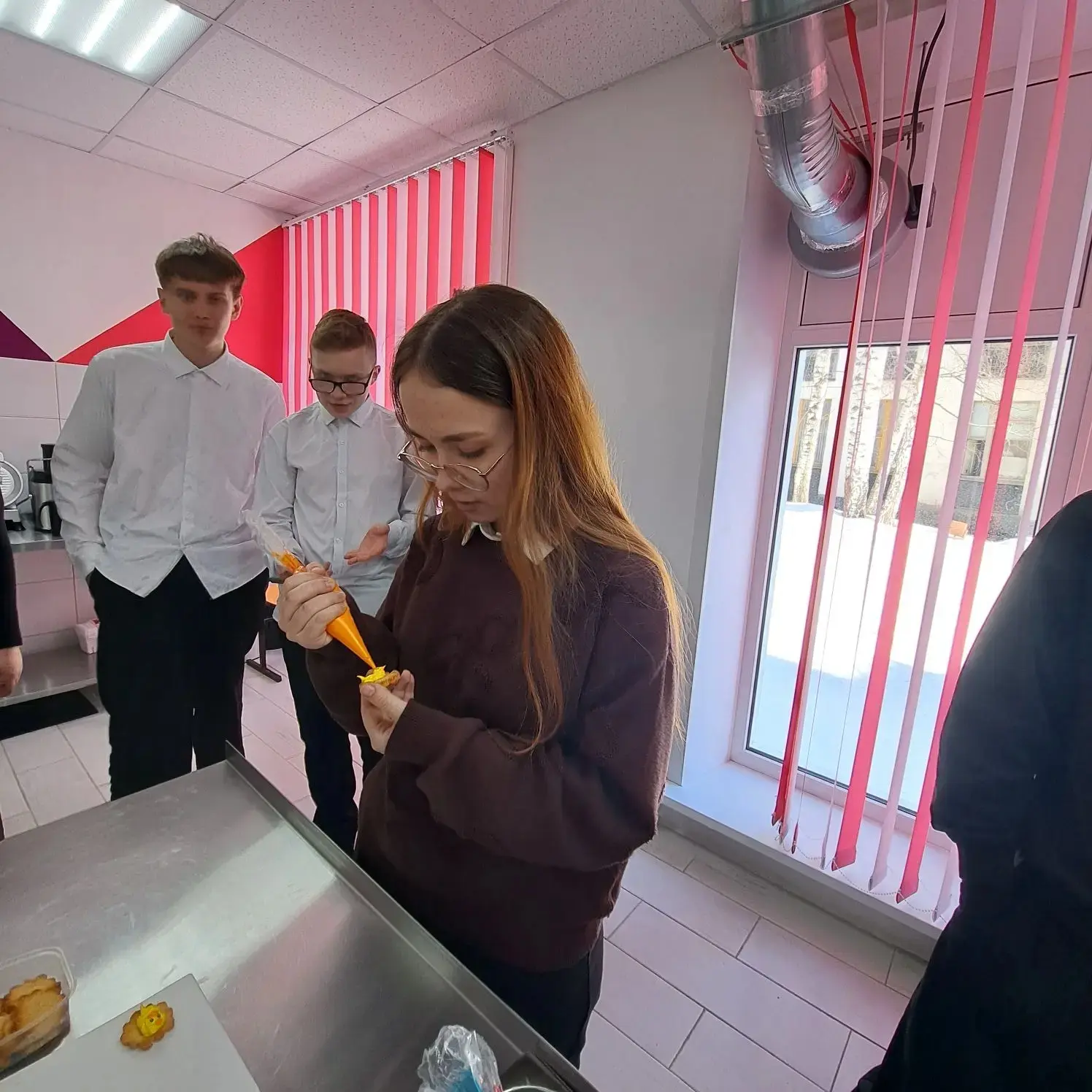 Мастер п/о А. И. Вильчик продемонстрировал ребятам процесс наложения валиков полуавтоматической сваркой. В направлении кондитерское дело для юных гостей провели мастер-класс по созданию изящных элементов оформления для пирожных.