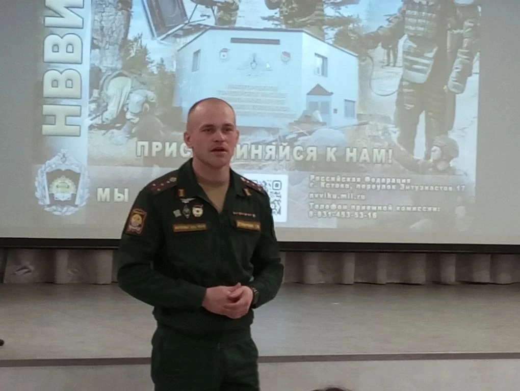 На минувшей неделе учащиеся 9–11 классов встретились с представителями Нижегородского Гвардейского высшего инженерно-командного училища. Ребята узнали о правилах приёма в училище и условиях обучения. Как парни, так и девушки проявили большую заинтересованность во встрече: было задано много вопросов, на которые они получили исчерпывающие ответы о службе военных инженеров.