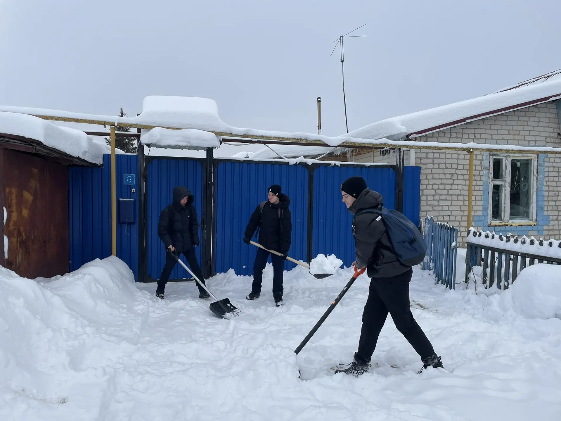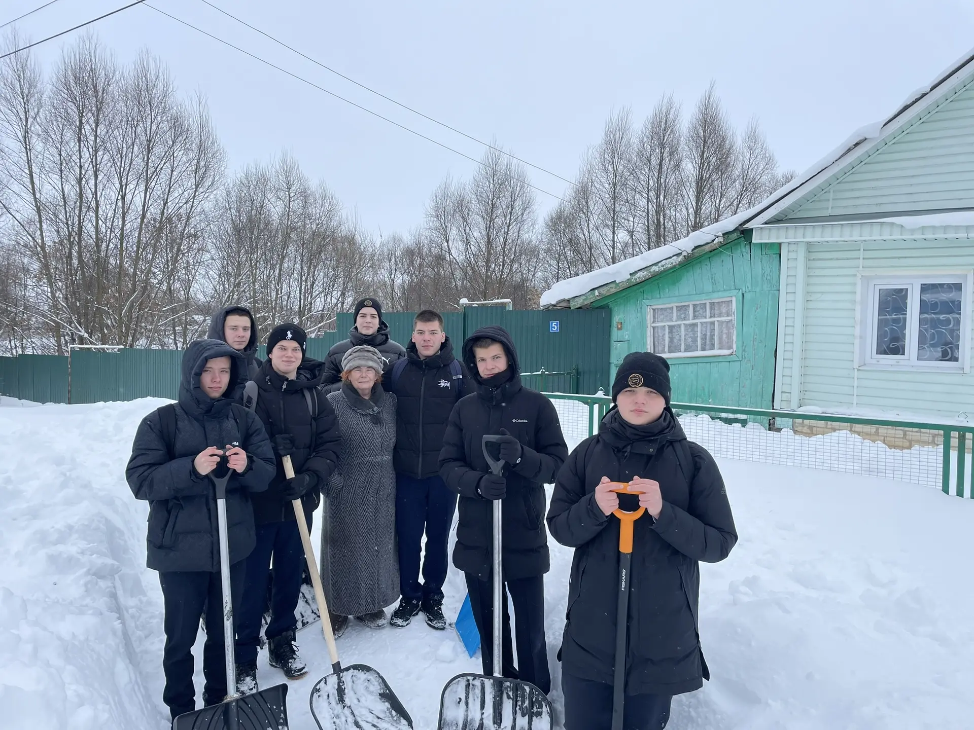 ☝Ребята очистили от снега придомовую территорию Полуэктовой Надежды Аркадьевны педагога- ветерана, матери участника СВО , Акмайкиной Татьяне Николаевне жене участника СВО и Борисовой Клавдии Петровны вдове бывшего директора нашей школы Борисова Виктора Васильевича.