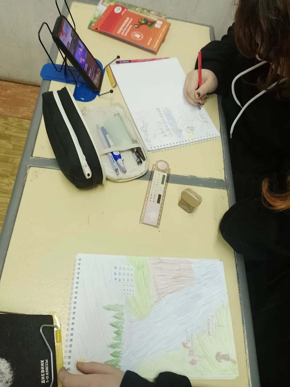 В 7 классе на уроке ИЗО прошел конкурс рисунков на тему" Безопасность начинается с тебя."