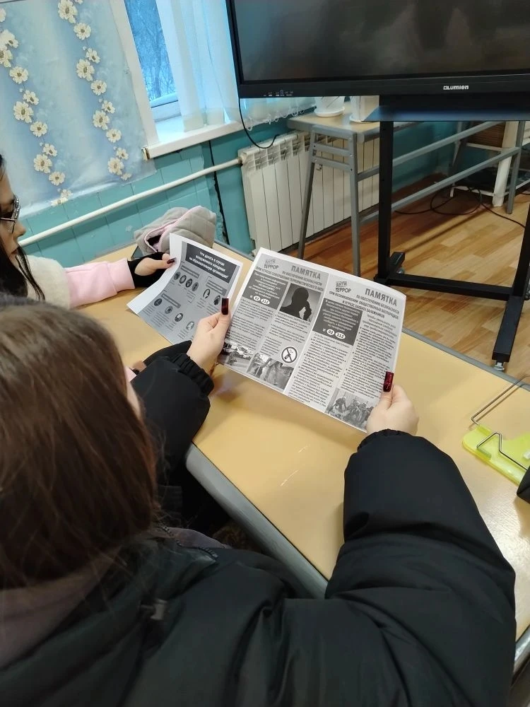 Сегодня в 9 классе педагог-психолог провела занятие с элементами тренинга "Как противостоять экстремизму и терроризму". Вместе с педагогом ребята дали определения таким понятиям как: экстремизм, терроризм и кибертерроризм. В ходе мероприятия разобрали возможные ситуации, которые могут возникнуть при захвате заложников и пришли к правильным вариантам их решений. Для закрепления материала были вручены памятки, содержащие алгоритмы действий в кризисных ситуациях.