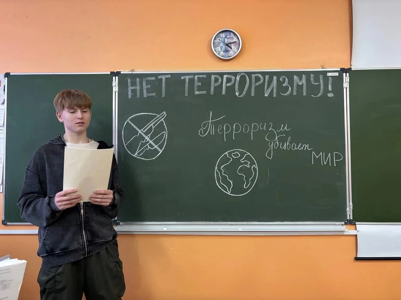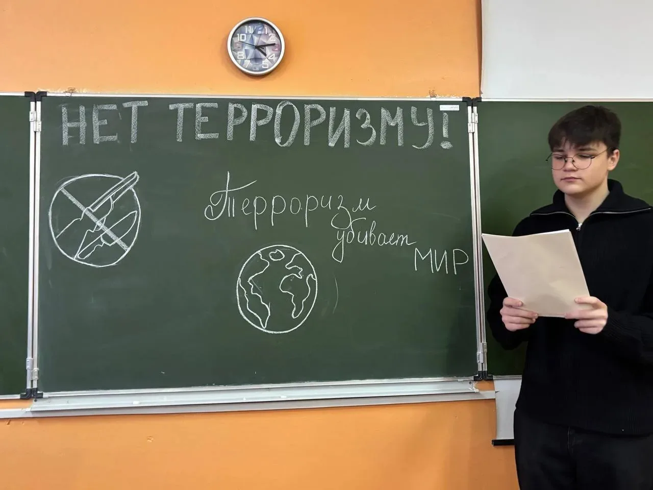 В рамках единого дня профилактики терроризма в 9 классе был проведён урок безопасности по теме "Терроризму - нет!" В ходе урока обучающиеся узнали этимологию слова "терроризм" и в очередной раз закрепили правила безопасного поведения при угрозе террористического акта, которые, к сожалению, необходимо неукоснительно соблюдать в условиях повышенной опасности, дабы иметь возможность предвидеть опасные случаи по характерным признакам их появления и быть максимально бдительными.